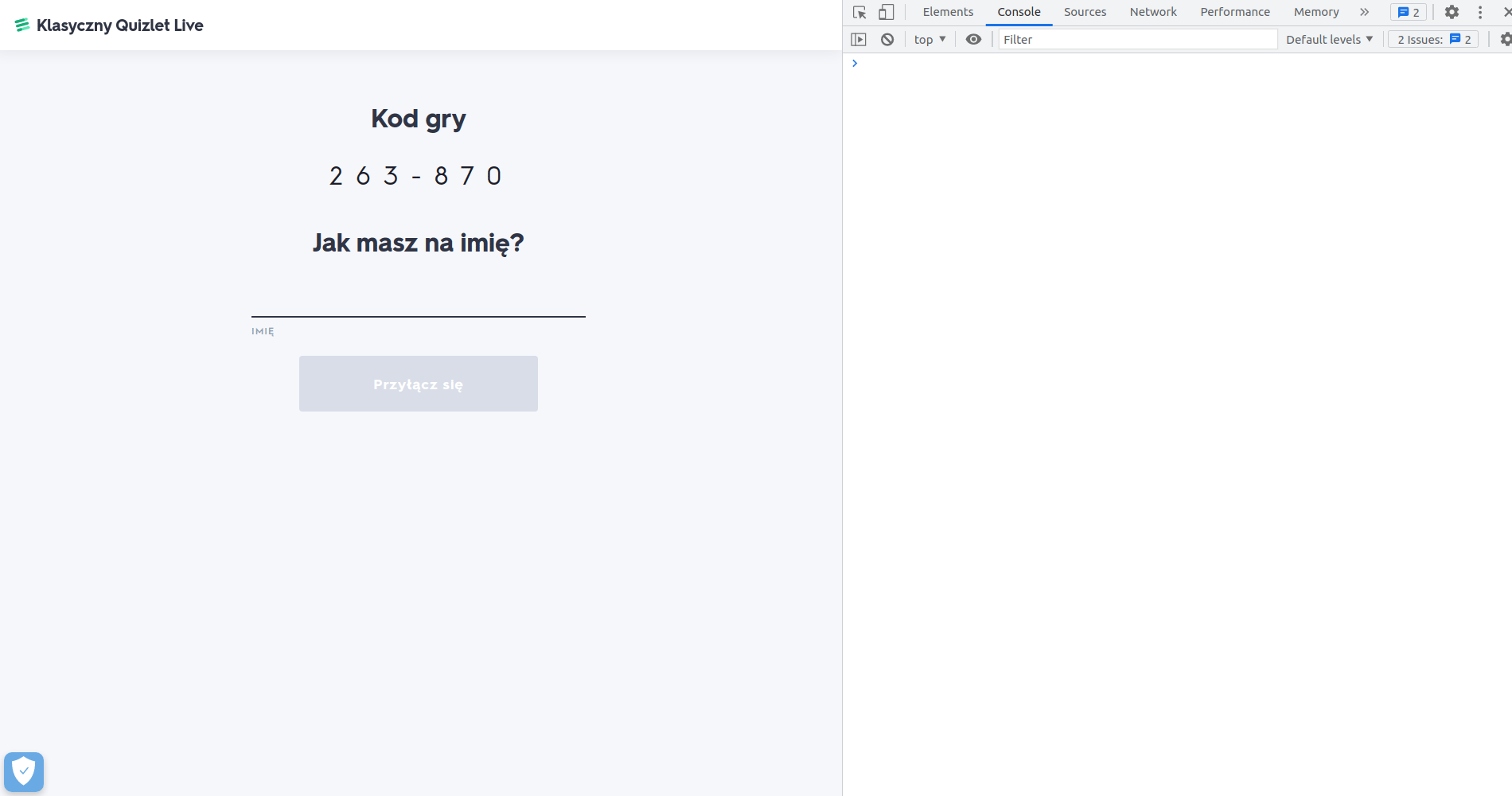 Open the console in your browser. By default, this is done with the shortcut CTRL + SHIFT + J, but if that doesn't work, right-click on the page and select inspect elements. Then go to the console, which you can select by clicking on it at the top of the panel.